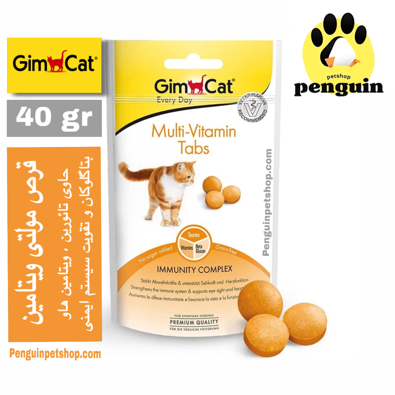مولتی ویتامین گربه جیم کت Multi-Vitamin Tabs وزن 40 گرم