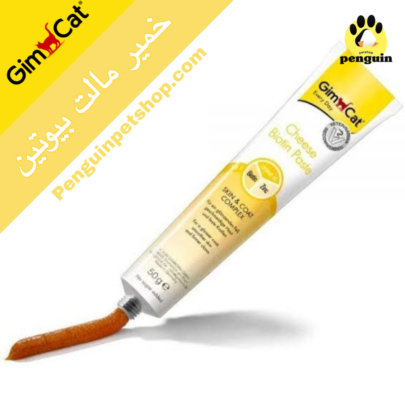 خمیر مالت گربه بیوتین جیم کت با طعم پنیر (Gimcat Cheese Biotin Paste) یک مکمل غذایی خوشمزه و مغذی برای گربه‌ها است که با ترکیبی از مالت طبیعی، پنیر واقعی و بیوتین، به سلامت پوست، مو و دستگاه گوارش کمک می‌کند. این خمیر به‌طور ویژه برای دفع گلوله‌های مویی (هیربال) طراحی شده و با طعم لذیذ پنیر، حتی گربه‌های بدغذا را نیز جذب می‌کند.