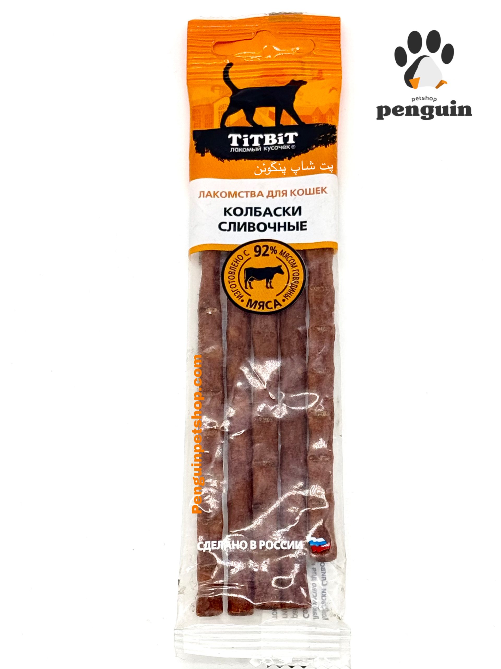تشویقی مدادی گربه تیت بیت Cat sausage طعم گوشت گوساله وزن 20 گرم