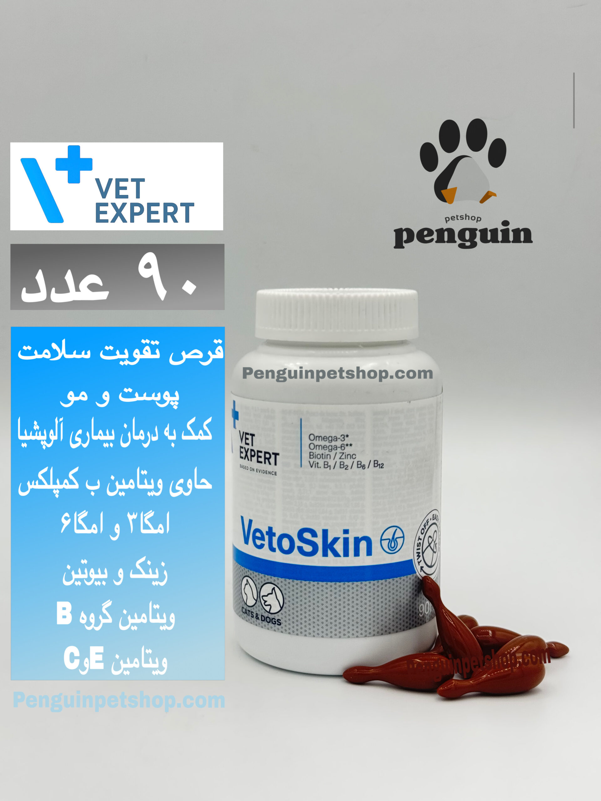 قرص پوست و مو وت اکسپرت سگ و گربه VETOSKIN بسته 90 عددی